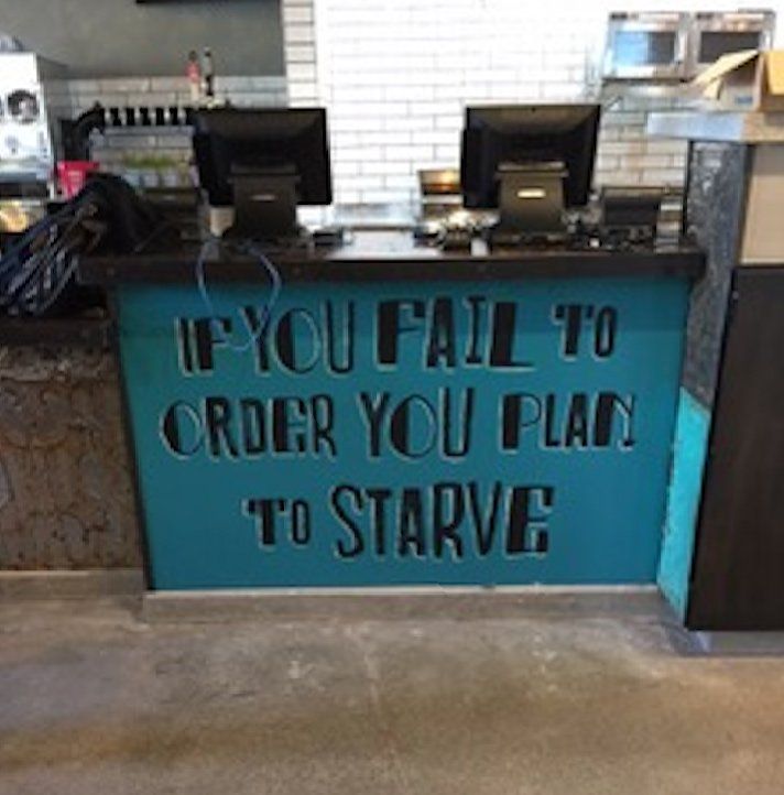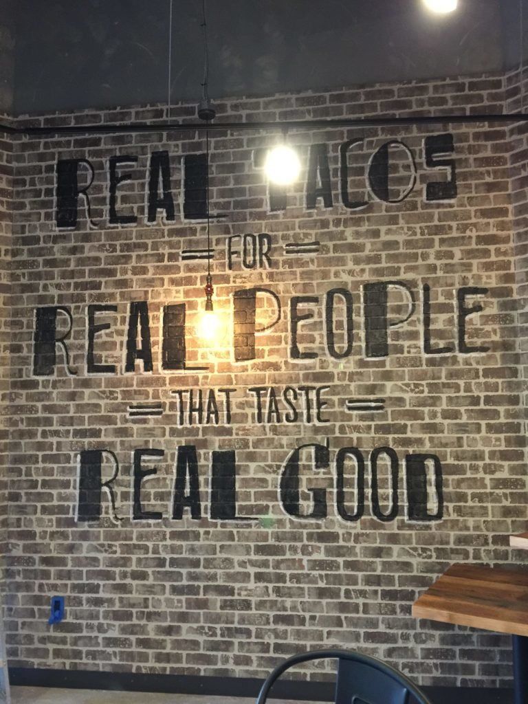 Interior signage for Taco Garage in Murfreesboro, Tennessee.
